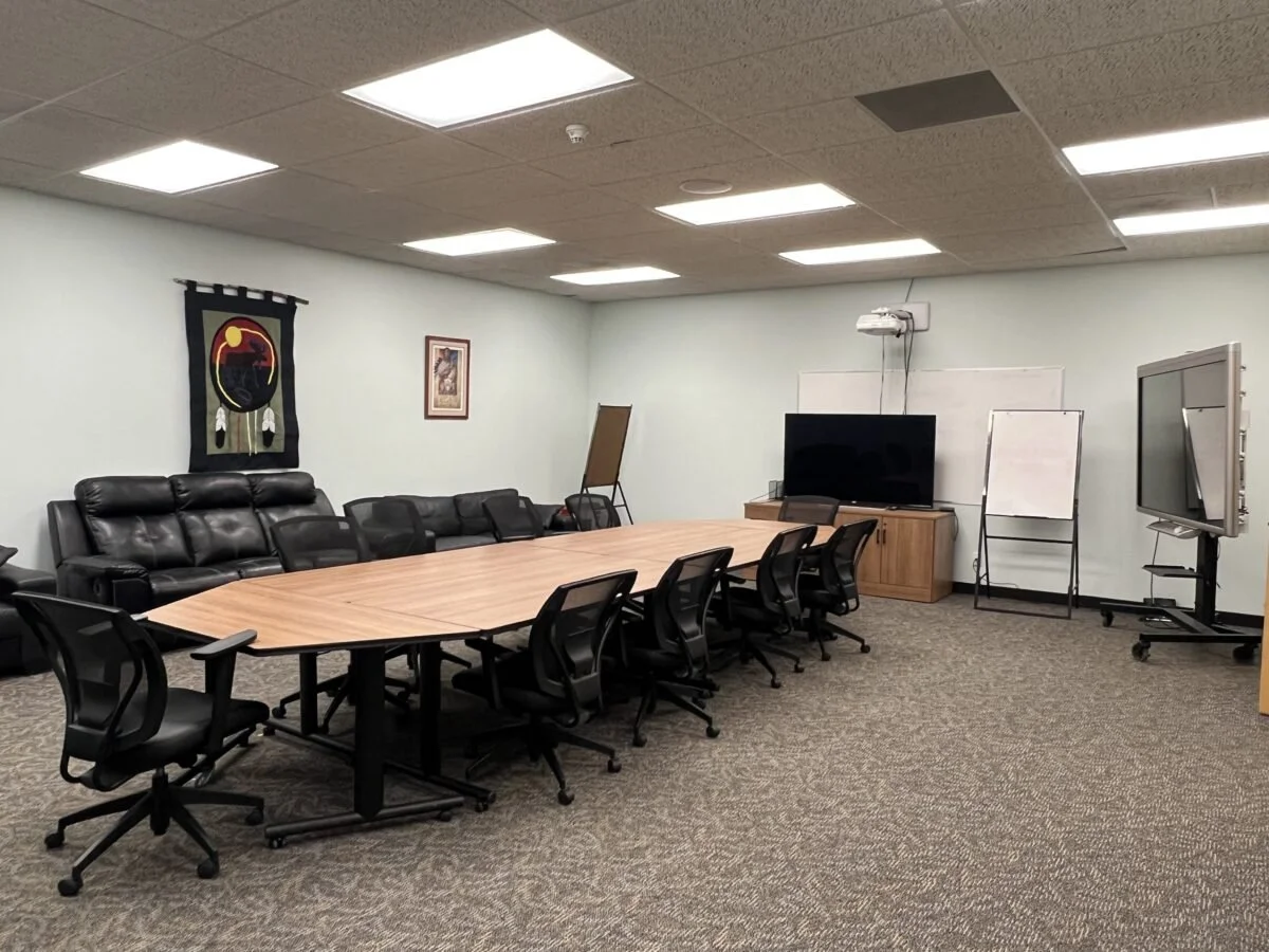 This medium-sized meeting space offers the perfect balance of comfort and functionality, making it ideal for team meetings, workshops, and small group gatherings. With enough room to accommodate several participants while still maintaining an intimate and focused atmosphere, the space is well-suited for collaboration, discussion, and planning sessions.