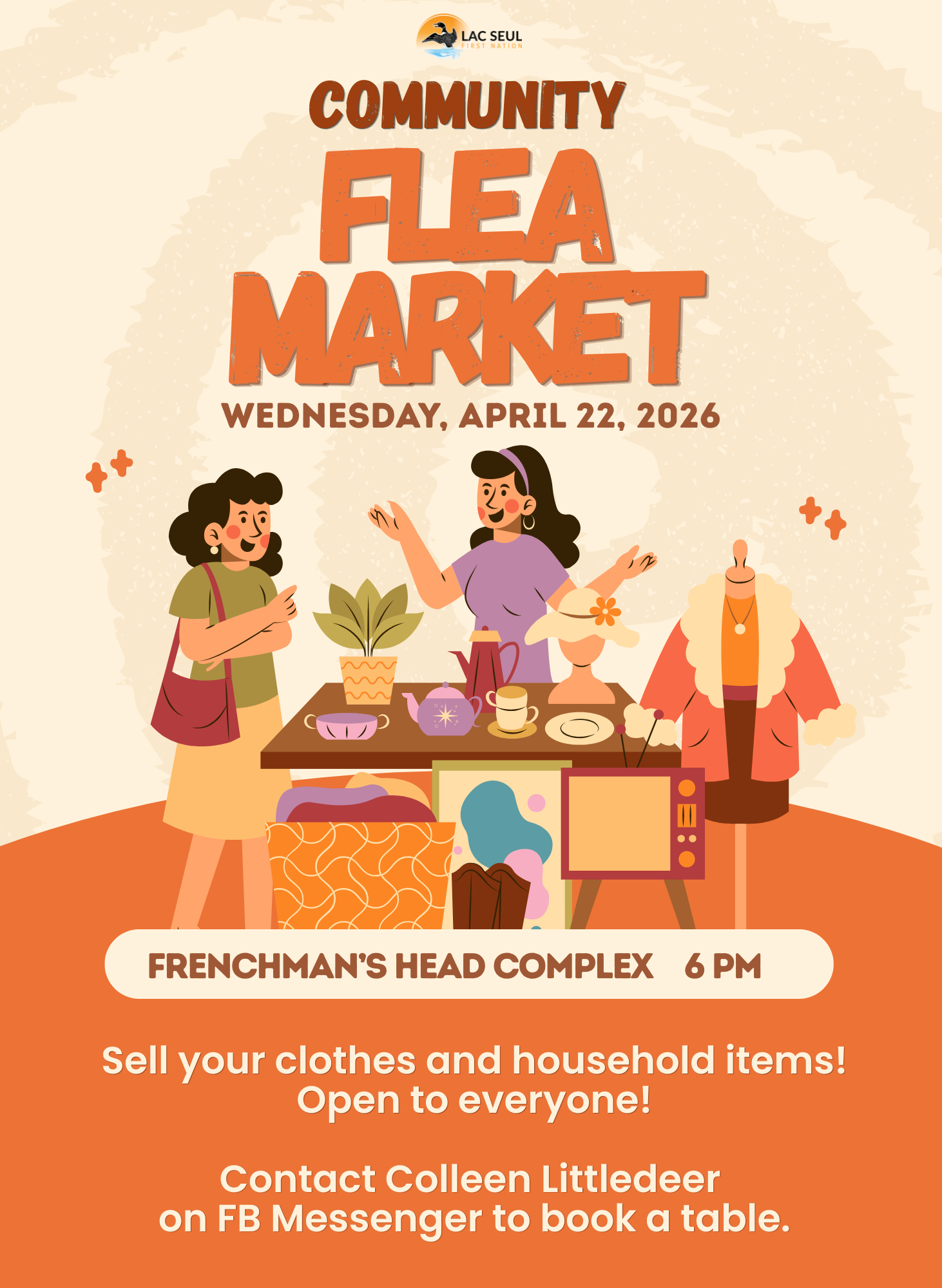 Community Flea Market Wednesday, April 22, 2026 6:00 p.m. 9:00 p.m. Frenchman's Head Complex (map) Google Calendar ICS