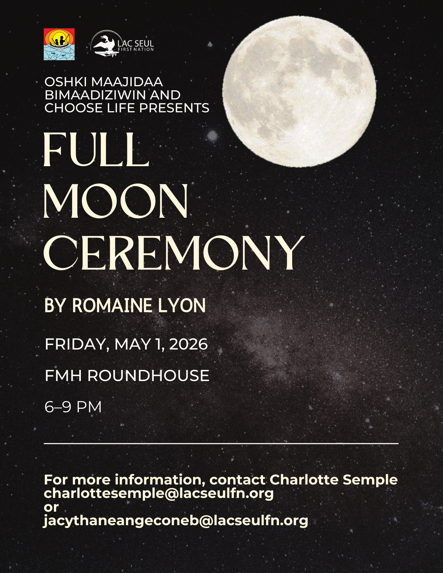 Back to All Events Full Moon Ceremony Friday, May 1, 2026 6:00 p.m. 9:00 p.m. FMH Roundhouse (map) Google Calendar ICS