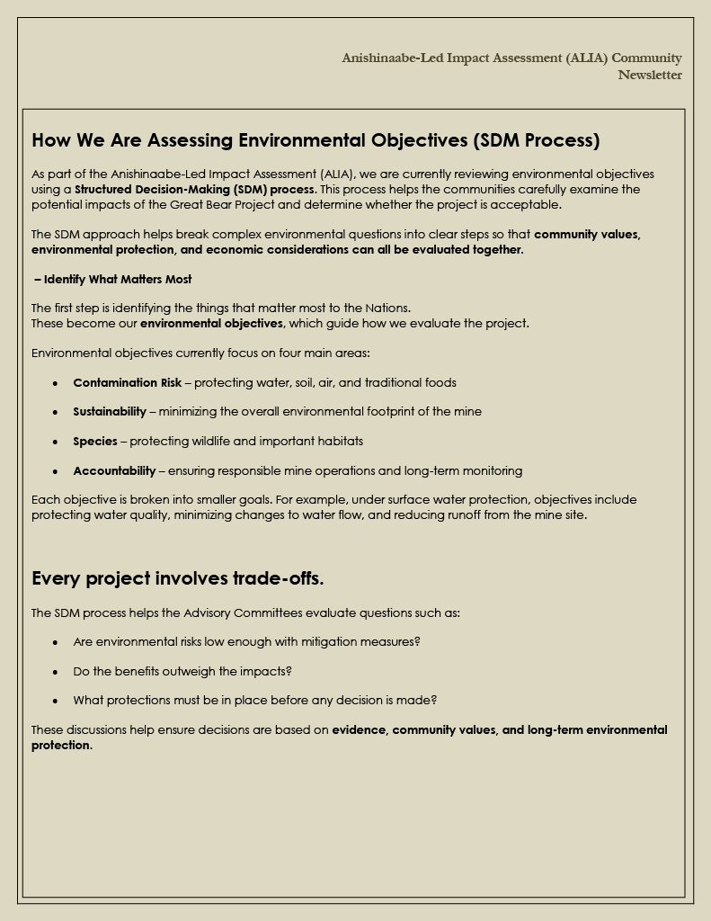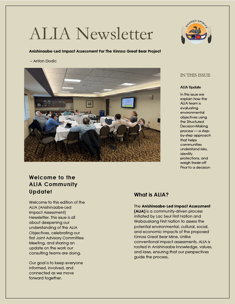 ALIA Newsletter Mar 12 Written By Lac Seul First Nation Anishinaabe-Led Impact Assessment for the Kinross Great Bear Project Lac Seul First Nation
