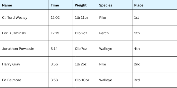 18th Annual Ice Fishing Derby Results