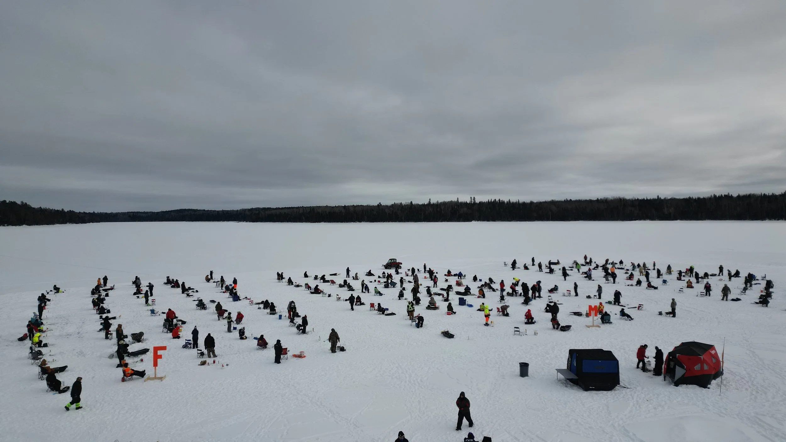 On Saturday February 21, 2026, 250 ice fishing holes lay drilled by Lac Seul Resort in Frenchman’s Head for the 18th Annual Derby.
