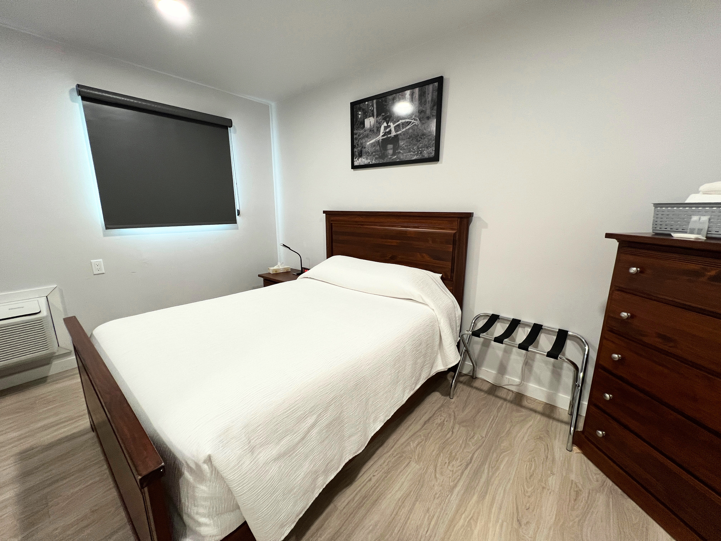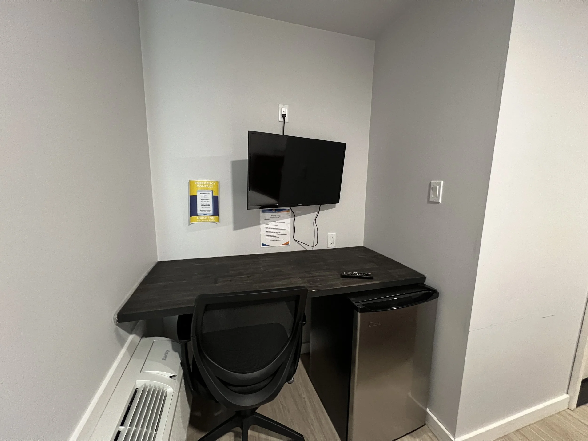 Spacious and private, this room comes with a little more leg room compared to the standard. Room comes with one double bed, nightstand, work station, tv, heating and cooling system, and mini fridge.