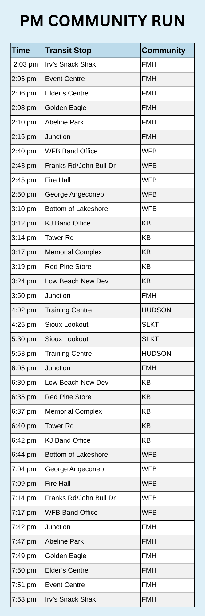 Lac Seul Transit operates Monday-Friday 7:00am - 7:30pm